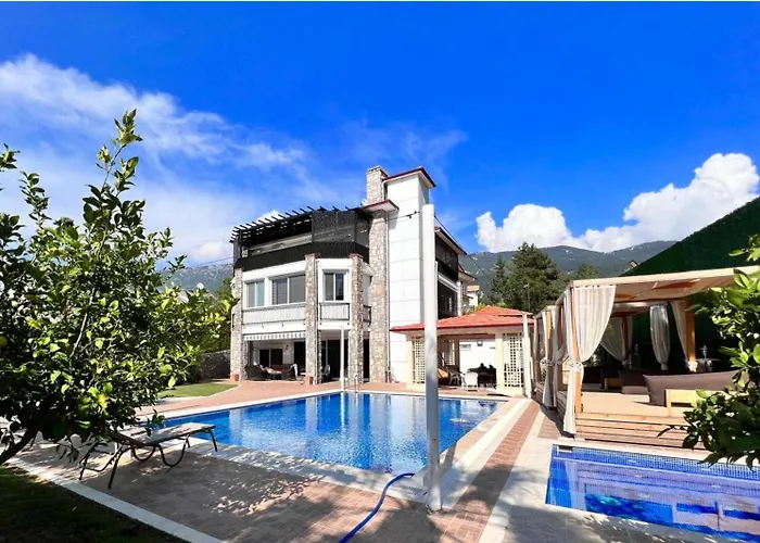 Welcome to Villa Guellue Fethiye, an exquisite sanctuary perched along Turkey's enchanting coastline. This unique property combines the charm of Mediterranean architecture with contemporary luxury, making it the ideal retreat for those seeking tranquility and elegance. Immerse yourself in the stunning views of the azure Aegean Sea and the enchanting backdrop of lush hills, creating a picturesque environment that captures the heart of every traveler.